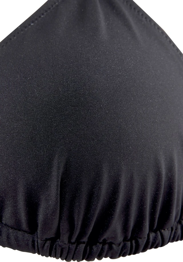 Unifarbener Triangel-Bikini von Bruno Banani. Dekoratives Schmuckelement zwischen den Cups. Top mit Neckholder sowie im Rücken zum Binden. Badeslip in knapper Passform mit seitlichen Bindebändern. Weiche Microfaser.