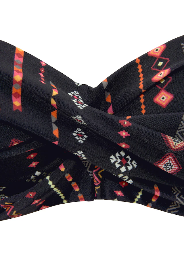 Bügel-Bandeau-Bikini von Buffalo. Top in getwisteter Optik. Wattiertes Cup mit herausnehmbaren Kissen für Cup A und B. Abnehmbare Träger im Nacken zu binden. Top im Rücken zu schließen. Hose mit gerafften Einsätzen. Obermaterial: 80% Polyamid, 20% Elasthan LYCRA® XTRA LIFE™. Futter: 100% Polyester