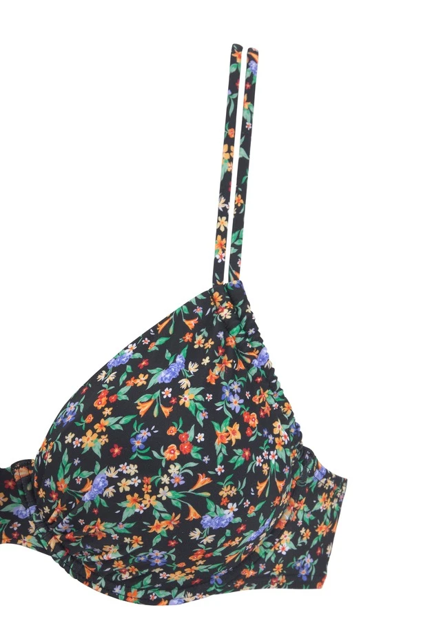 Bügelbikini von Buffalo. Top und Umschlagbund der Hose mit Blümchenprint. Verstellbare Doppelträger, herausnehmbare Softcups. Hose mit Quastendetail. Trageangenehme Qualität.