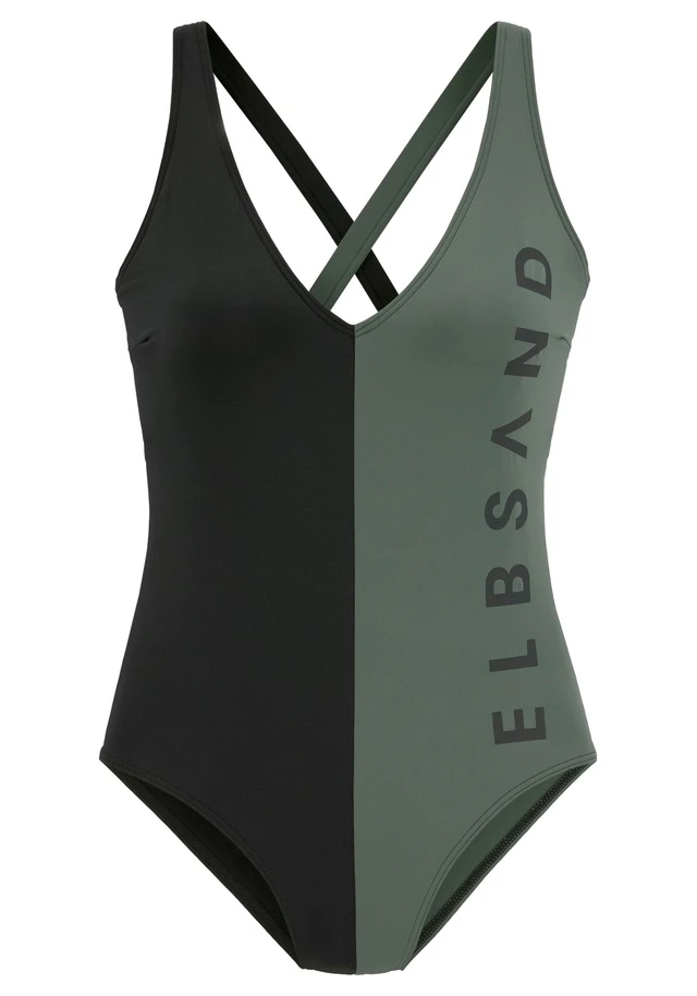 Angesagter Badeanzug von Elbsand in modernem Color-Blocking-Design. Träger im Rücken gekreuzt. Zauberhaftes Dekolleté: Cups herausnehmbar. Unterbrustgummi für optimalen Halt. Aus elastischem Material, schnell trocknend.
