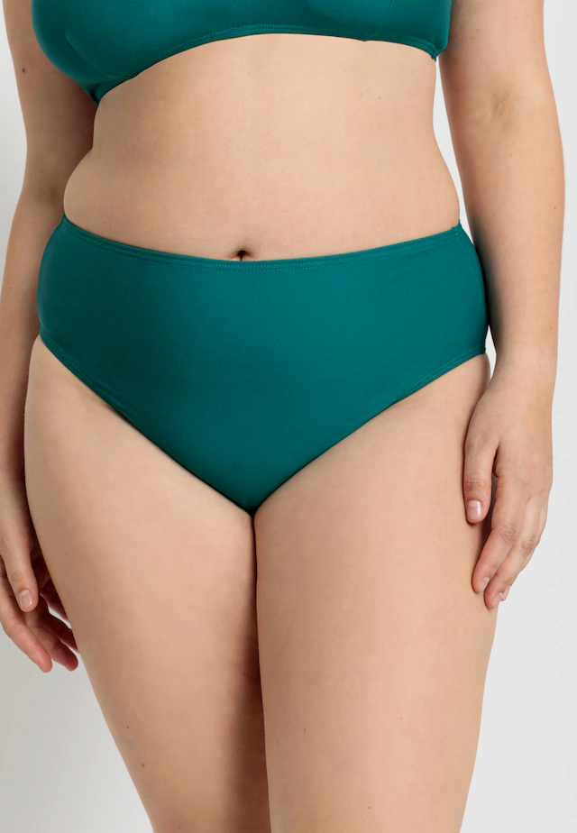 Unifarbene Bikinihose von LSCN by Lascana. High-waist-Passform mit extrabreiten Seitenstegen, seitlich hoch ausgeschnitten. Elastisches Material mit recyceltem Polyamid.