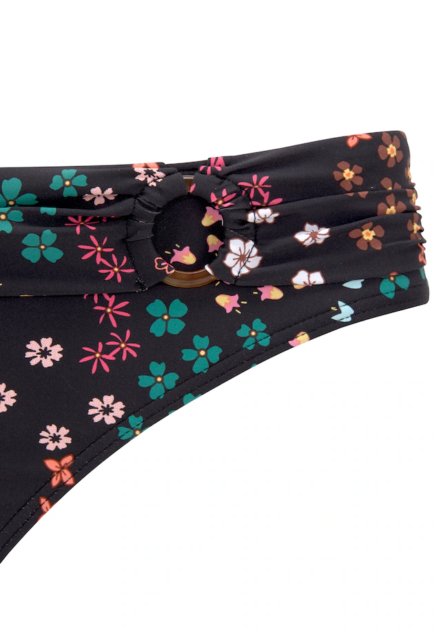 Bikinihose von s.Oliver. Floraler Alloverprint. Mit Umschlagbund und Zierring. Klassische Passform. Aus der Mix-Kini-Serie. Weiche Microfaser-Qualität.