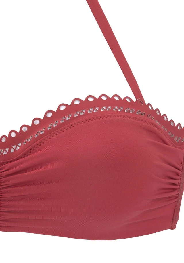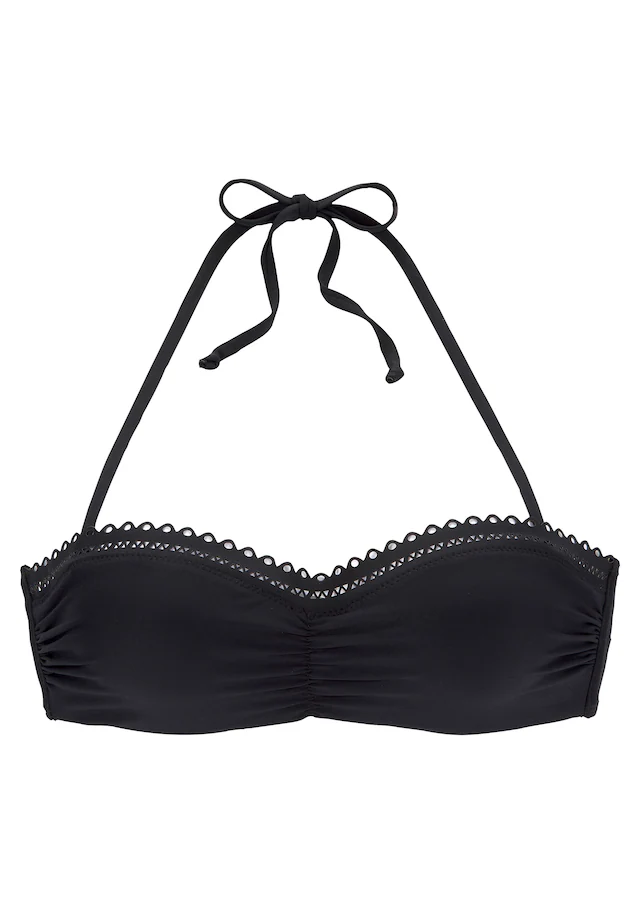Bügel-Bandeau-Top von s.Oliver mit dekorativem Lochmuster als Abschlusskante. Abnehmbares Neckholder zum Binden. Wattierte Cups für ein schönes Dekolleté. Weiche Microfaserqualität.