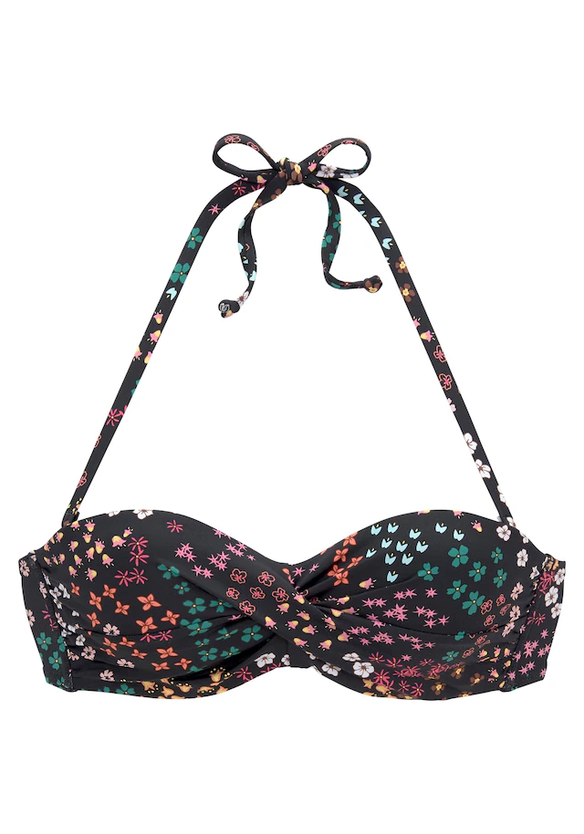 Bügel-Bandeau-Bikinitop von s.Oliver mit floralem Alloverprint. Neckholder zum Abnehmen. Seitenträger mit Verschluss im Rücken. Wattierte Cups mit herausnehmbaren Kissen. Aus der Mix-Kini-Serie. Angenehme Qualität.