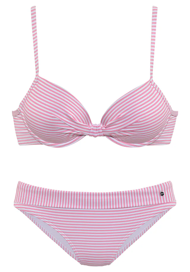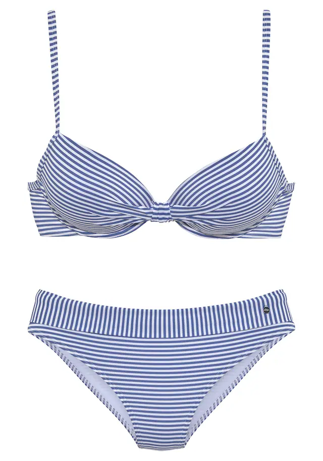 Aparter Bügel-Bikini von s.Oliver. Im Streifendesign. Wohlgeformtes Dekolleté durch wattierte Cups. Träger verstellbar. Bikini-Hose mit Umschlagbund. Perfekt für das Urlaubsoutfit. Weiches Material.