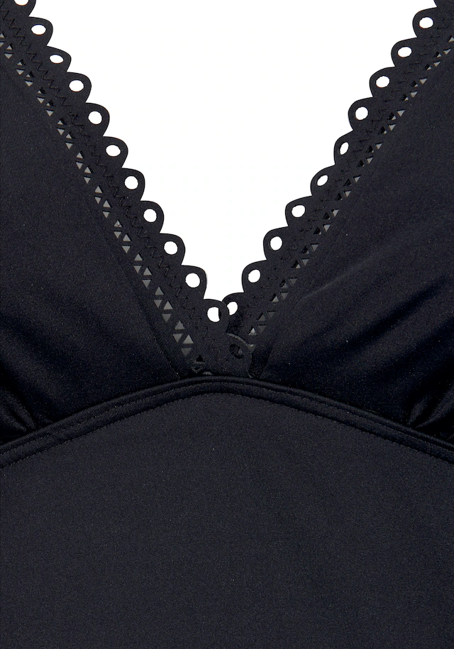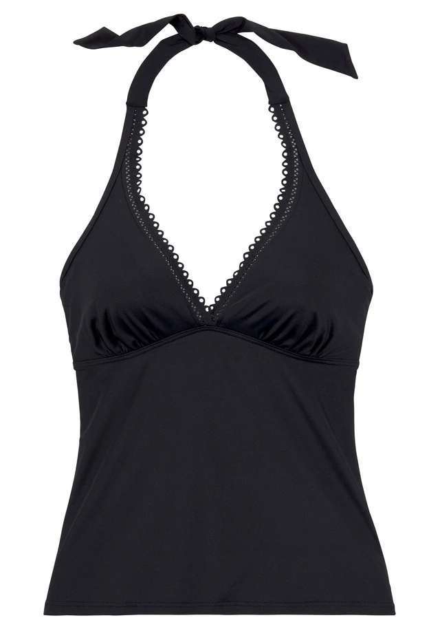 Bügel-Tankini-Top von s.Oliver mit dekorativem Lochmuster als Abschlusskante. Neckholder zum Binden. Herausnehmbare Cups. Weiche Microfaserqualität.