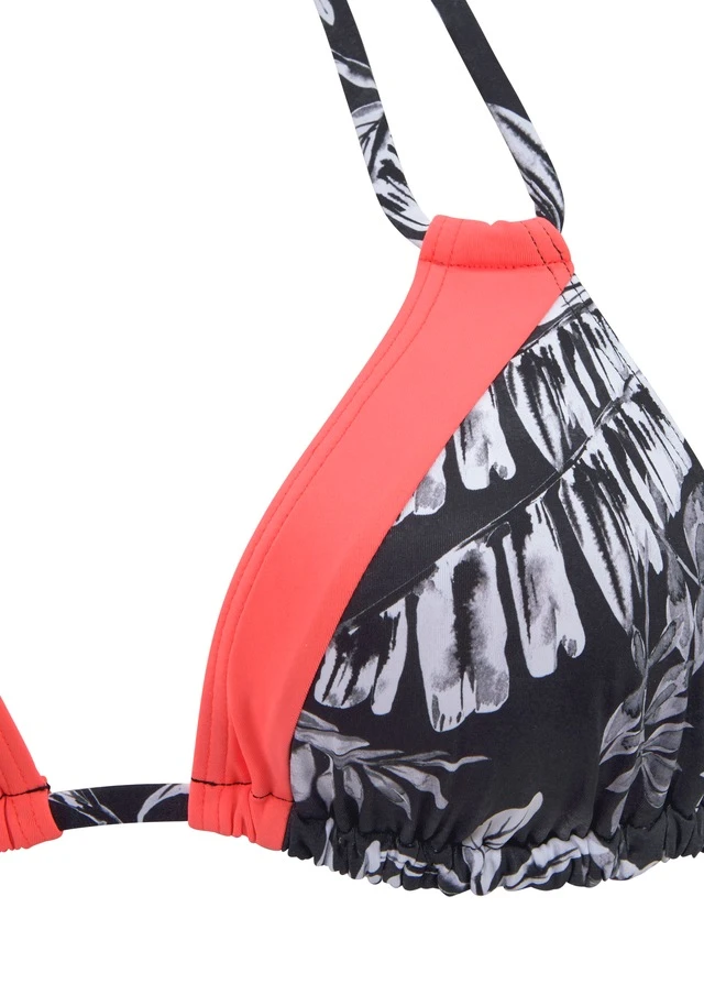 Tolles Triangel-Bikinitop von Sunseeker. Alloverprint mit Kontrastdetails. Regulierbare Bindebänder, herausnehmbare Softcups. Aus der Mix-Kini-Serie. Angenehm elastische Qualität.