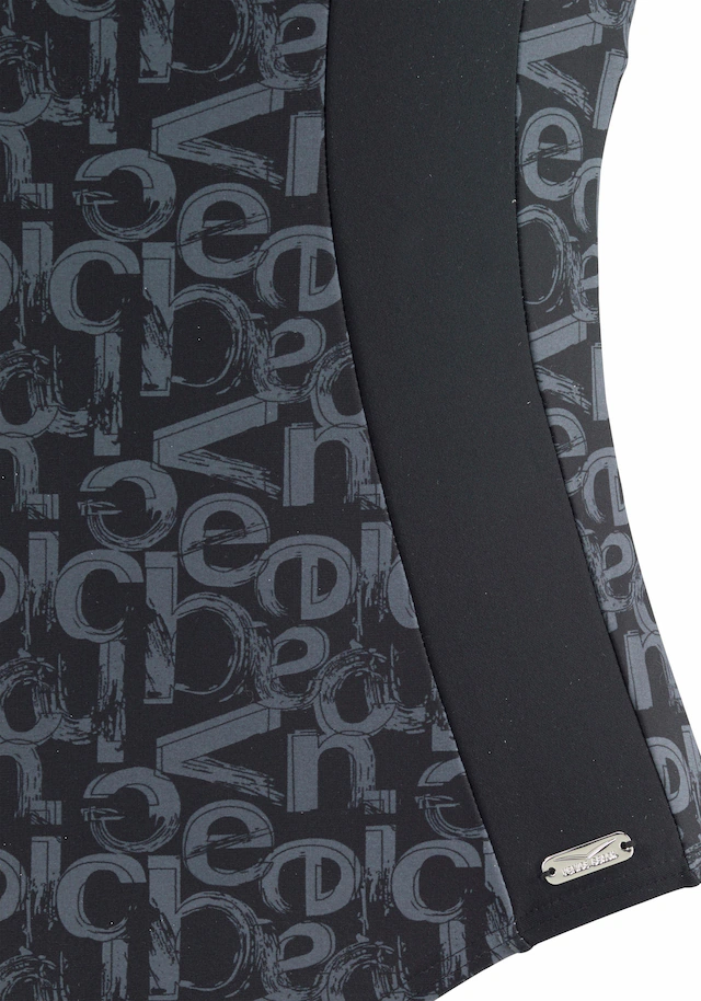Badeanzug von VENICE BEACH mit modisch bedruckten Einsätzen. Mit Ringerrücken, Shaping-Einsatz und Unterbrustgummi vorn. Bis C-Cup geeignet.