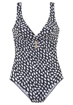 Badeanzug mit Unterbrustgummi und Shaping-Einsatz vorn für eine optisch schlankere Silhouette. Ringerrücken. Bis C-Cup geeignet. Im angesagten Design mit Buchstabenprint.
