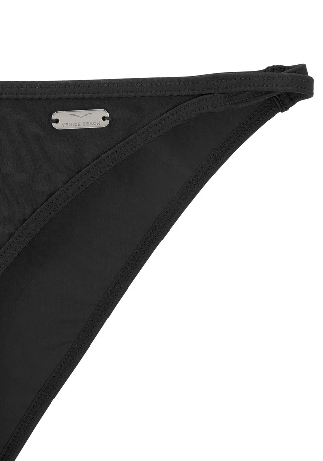 Schlichte Bikinihose von Venice Beach. Unifarbenes Design mit kleinem Metallemblem vorn. Knapper Schnitt mit schmalen gekreuzten Seitenbändern. Softe Qualität.