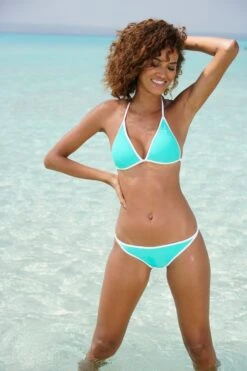 Schöner Bikinislip von Venice Beach. Kontrastfarbene Pipings und kleiner Logoschriftzug. Knapp geschnitten mit schmaler Seitennaht. Trageangenehme Qualität.