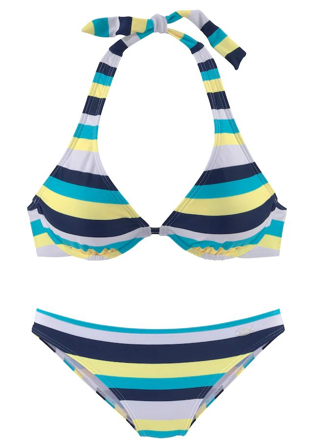 Stylischer Bügel-Bikini von Venice Beach mit frischem Streifendesign. Neckholder zum Binden. Herausnehmbare Softcups. Seitenstege mit Verschluss im Rücken. Klassisch geschnittene Bikinihose. Angenehme Qualität.