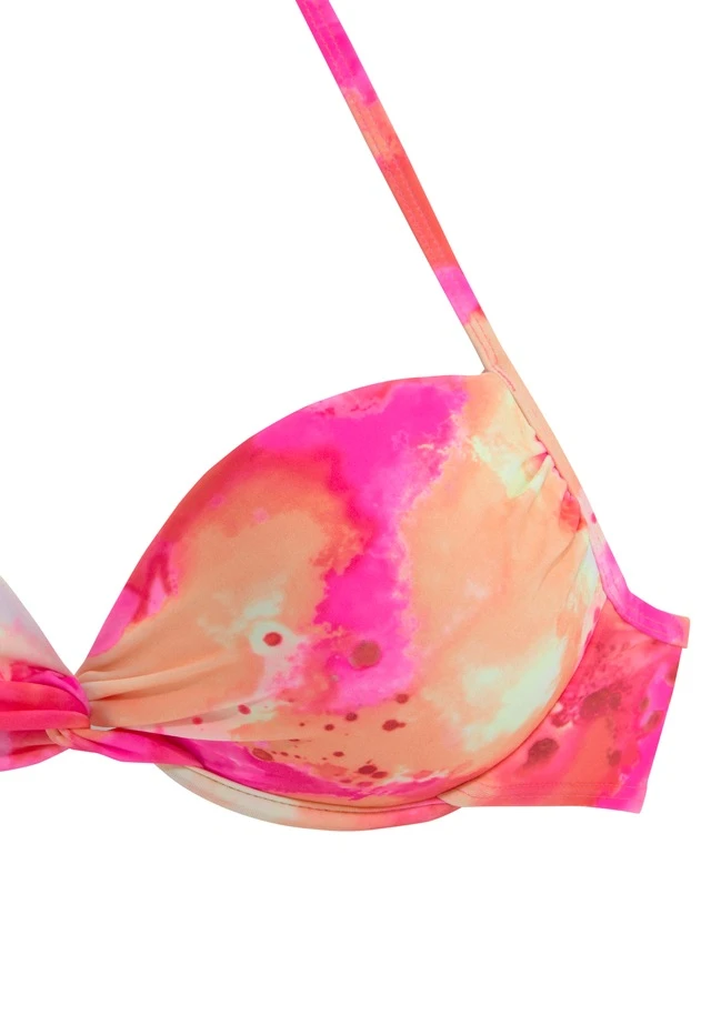 Push-up-Bikini von Venice Beach. Alloverprint in Tie-Dye-Optik. Neckholder zum Binden. Cups mit Kisseneinlage. Im Rücken zu schließen. Bikinihose mit raffiniert seitlich verschlungenen Bändern. Angenehme Qualität.