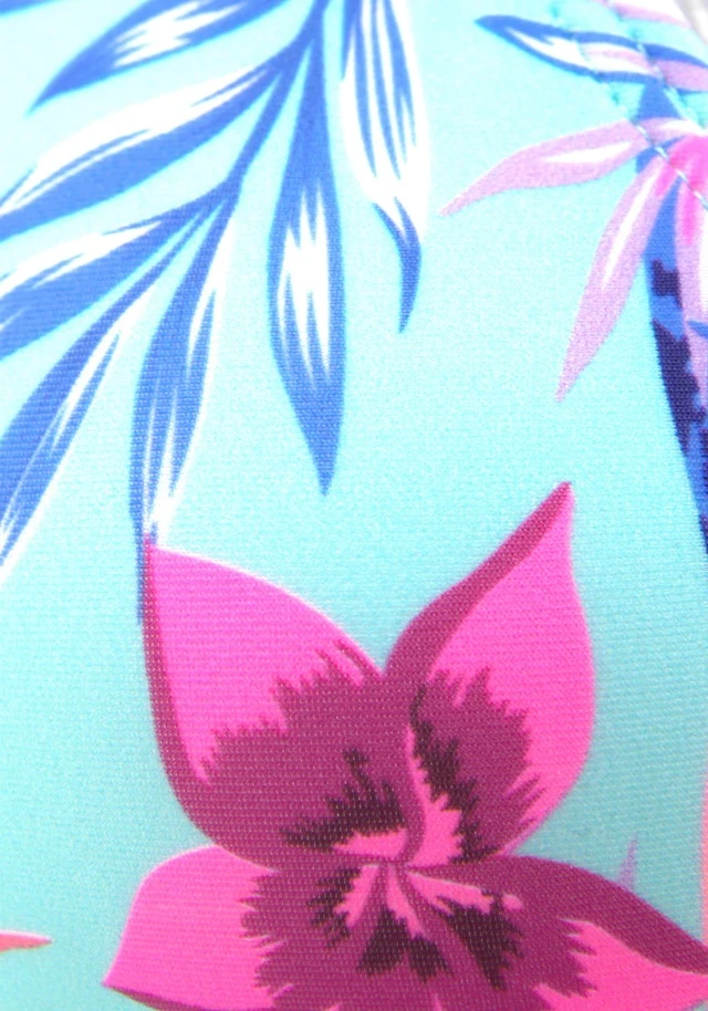 Triangel-Top von Venice Beach. Regulierbar, mit herausnehmbaren Cups. In 2 Designs: mit Blumenprint oder komplett im Streifenlook. Obermaterial: 80% Polyamid, 20% Elasthan LYCRA® XTRA LIFE™. Futter: 100% Polyester
