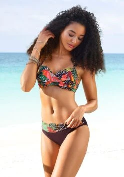Bügel-Bandeau-Bikini von Vivance. Floraler Alloverprint – jedes Teil ein Unikat. Oberteil mit wattierten Cups und flexiblen Einlagen. Abnehmbarer Neckholder zum Binden. Bikinihose mit seitlichen Raffungen. Weiche Microfaserqualität.